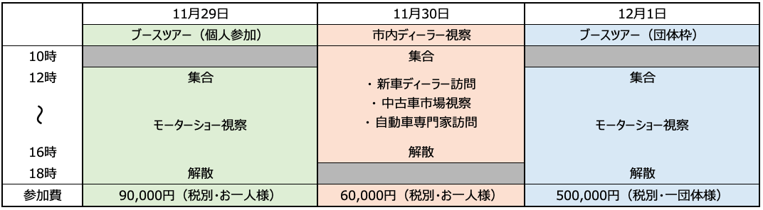 ※ 上海モーターショーの参加には入場チケットが必要になります。ご参加頂く場合には各自チケット手配をお願い致します。