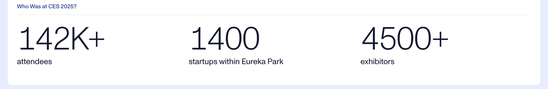 CESは1967年から続く世界最大級のハイテク見本市で、毎年1月に米国・ラスベガスで開催されます。今年年初に開催されたCES2025には世界150ヵ国から約14万人が訪れ、約4,500社の出展企業により、新技術・新製品・新しいサービスが出展されました。かつては家電製品主体の展示会でしたが、現在は、最先端モビリティ・自動運転&電気自動車、先進的なAIやIT、フード&ヘルステックなどの新規分野やスタートアップの出展も数多く、世界最大規模のテクノロジーの祭典です。