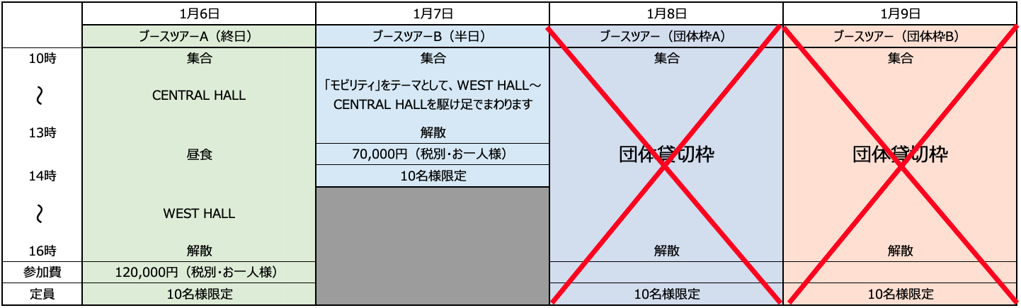 団体枠(企業・団体貸切枠です):1日で会場全体を視察します