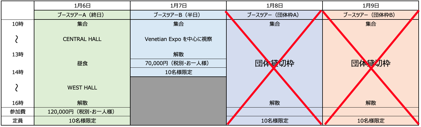 ブースツアーB(半日):2026年1月7日(水)・10時〜13時(半日)